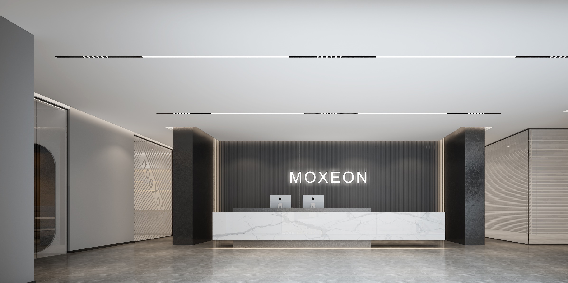 案例說明: 本案為日本電子公司園區自購整幢5層辦公樓室內裝修項目,本案設計首先闖入眼簾的是企業形象墻,以其企業文化的新興、蓬勃、嚴謹為主題,兩側以“居有竹、步步高”的顏色帶來視覺沖擊感,加上企業形象色的類比色、淺色及裝飾線條的運用,顯示出材質的質感和工業文明的主題;華堂上方呼應以直線為主調、大筆勾勒而出的時尚吊頂,大直大方顯示出強烈的縱深感,加之以清透、明媚的光色渲染,工整氣派、大家風范,反襯出公司辦公樓的現代時尚特性,以干練快捷的設計節奏,展示出質量與效率并舉的時代精神。